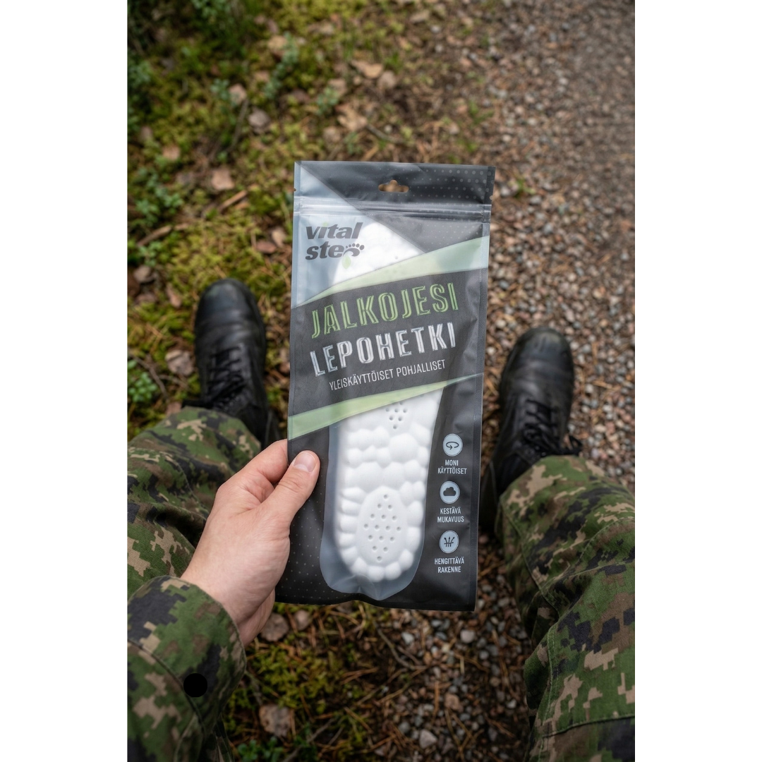 VitalStep pohjalliset on suunniteltu palauttamaan askeleisiisi luonnollisen keveyden. Pohjallisen innovatiivinen hunajakennorakenne toimii kuin luonnon oma iskunvaimennus: se joustaa painon alla, mutta palautuu muotoonsa antaen virtaa seuraavaan askeleseen.