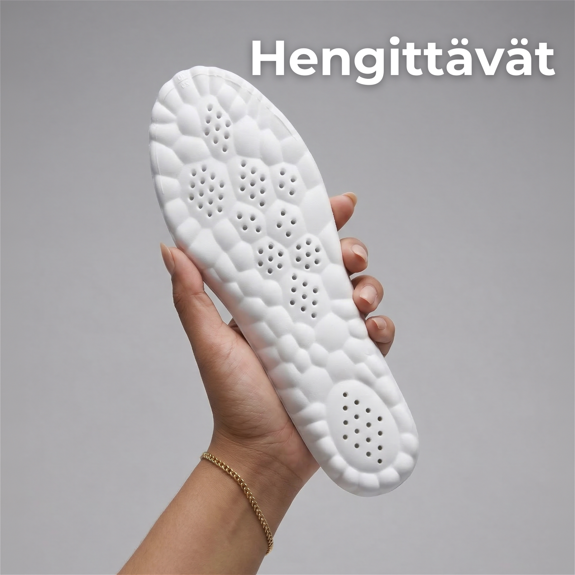 Tukee jalkaholvia ja jakaa painon tasaisemmin