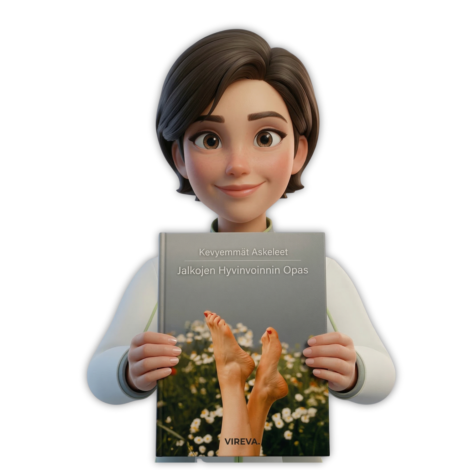 Saat ostoksesi yhteydessä “Jalkojen Hyvinvoinnin Oppaan”, joka sisältää käytännön vinkkejä jalkojen jaksamiseen, palautumiseen ja arjen kuormituksen vähentämiseen.